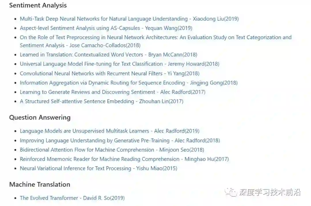【导读】 本资源整理了近几年,自然语言处理领域各大AI相关的顶会中,一些经典、最新、必读的论文,涉及NLP领域相关的,Bert模型、Transformer模型、迁移学习、文本摘要、情感分析、问答、机器翻译、文本生成、质量评估、纠错(多任务、masking策略等。)、Probe、多语言、领域相关、多模态、模型压缩、谓词填充、Analysis、分词解析NER、代词指代消解、词义消歧、情感分析、关系抽取、知识库、文本分类等,几乎涵盖所有领域。