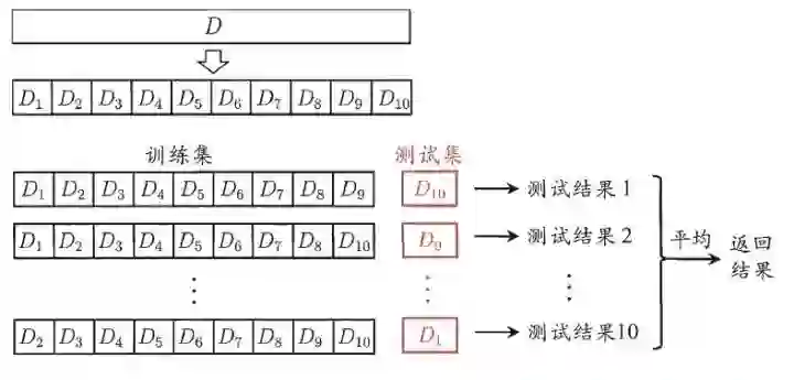10折交叉验证(图片来源: 周志华, 机器学习, 清华大学出版社, 2016)