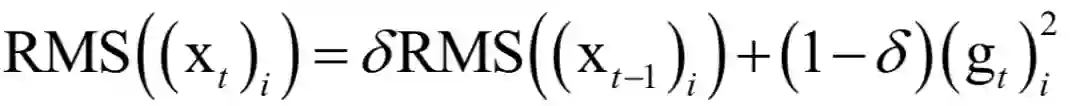 RMSProp算法是对AdaGrad的改进,避免了长期累积梯度值所导致的学习率趋向于0的问题。具体做法是由梯度值构造一个向量RMS,初始化为0,按照衰减系数累积了历史的梯度平方值。更新公式为:
