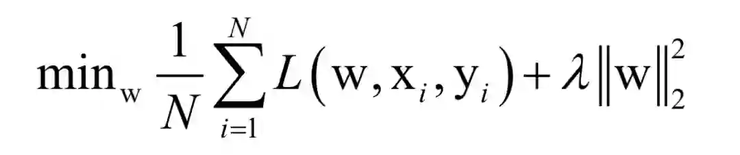 在这里,N为训练样本数,L是对单个样本的损失函数,w是要求解的模型参数,是映射函数的参数,xi为样本的特征向量,yi为样本的标签值。