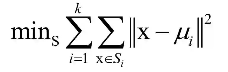 在这里k为类型数,x为样本向量,μi为类中心向量,Si为第i个类的样本集合。