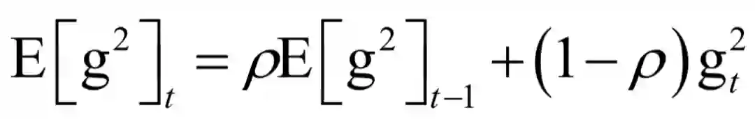 AdaGrad直接累加所有历史梯度的平方和,而这里将历史梯度平方值按照δt衰减之后再累加。参数更新公式为: