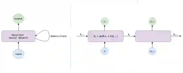 在时间t处计算得出的隐状态(ht为我们的内部知识)在下个时间步长内会被反馈给神经网络。(另外,我会在本文中交替使用隐状态、知识、记忆和认识等概念来描述ht)