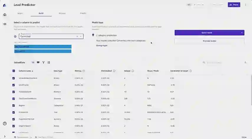 还有最新推出,在圈内引发高度关注的 Amazon SageMaker Canvans ,面向0代码经验的企业内部分析师、运营者,帮他们在实际业务中应用到机器学习这门技术。