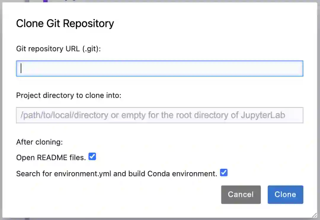 若克隆项目中有 yml 环境配置文件,在建立项目同时,也会同步建立好 Conda 环境。