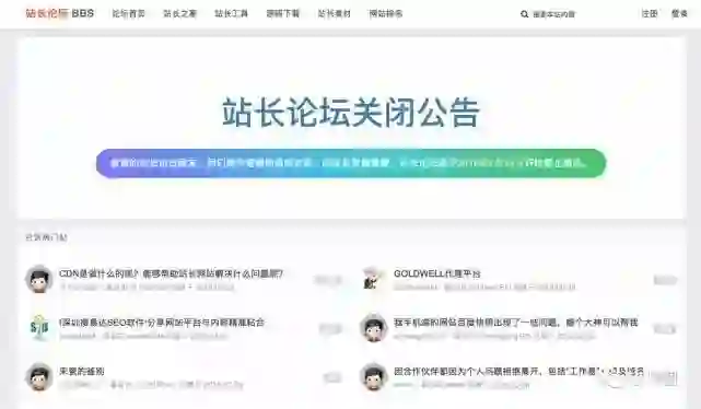 日前,站长论坛发布了一则关闭的公告。站长论坛发布公告称,因业务发展需要,论坛将于2018年7月15日正式停止运营。