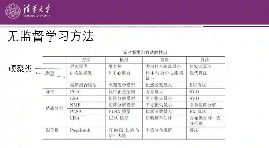 课件的最后一章总结了常见的无监督学习方法以及各种方法之间的关系。