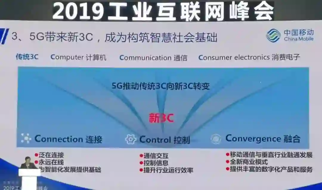 5G为社会带来新价值的核心体现就是推动传统的3C(即计算机computer、通信communication、消费电子consumer electronics)向新3C转变。