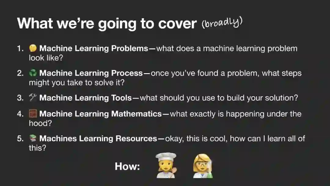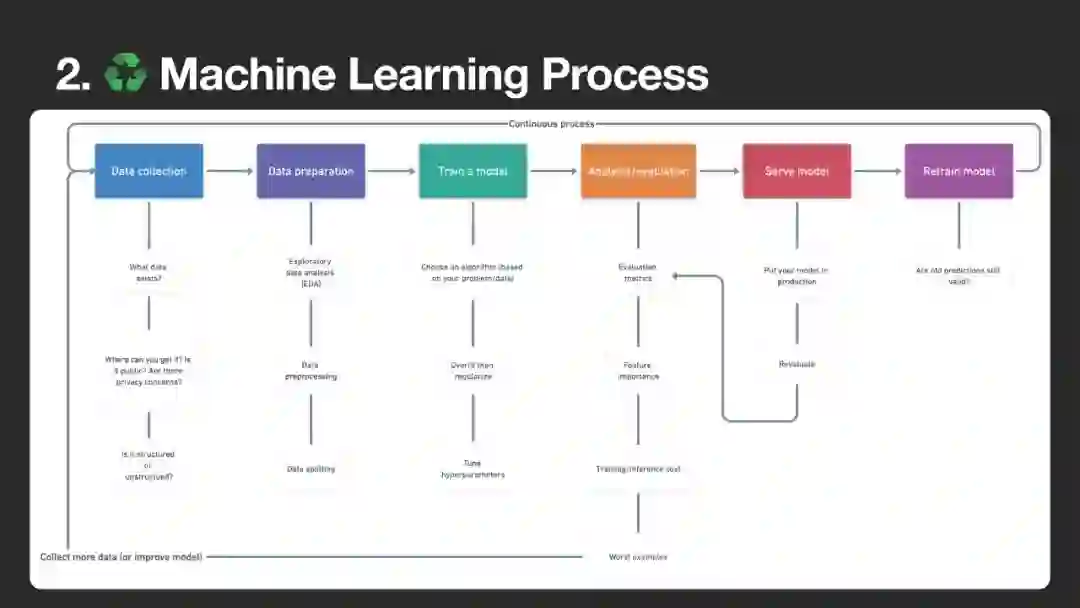 机器学习中许多最重要概念路线图,如何学习它们以及使用什么工具来执行它们。