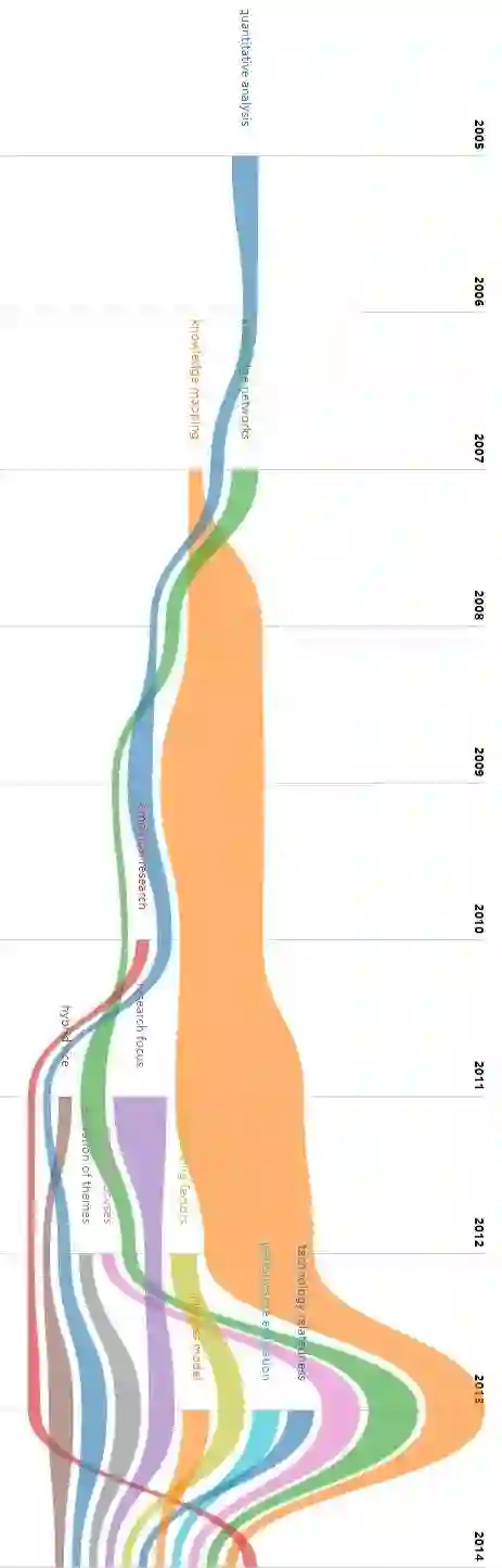 就全局而言,知识图谱的热点主要集中在knowledg mapping、mapping knowledge domains、military medicine、research fronts、technological innovation等领域。