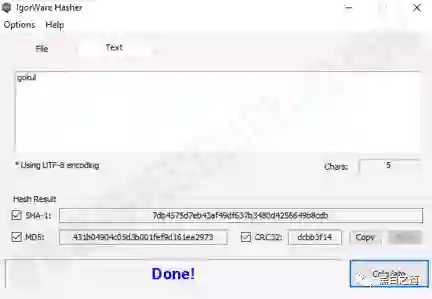 文本的哈希将显示在“ 哈希结果 ”部分中。