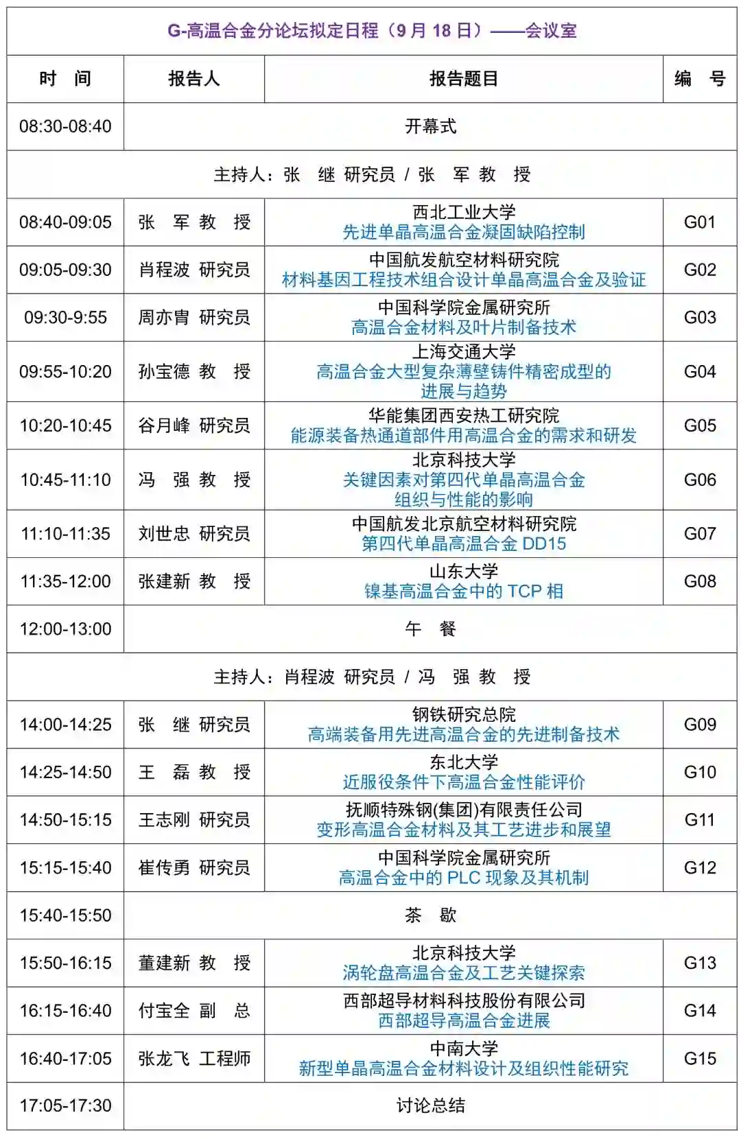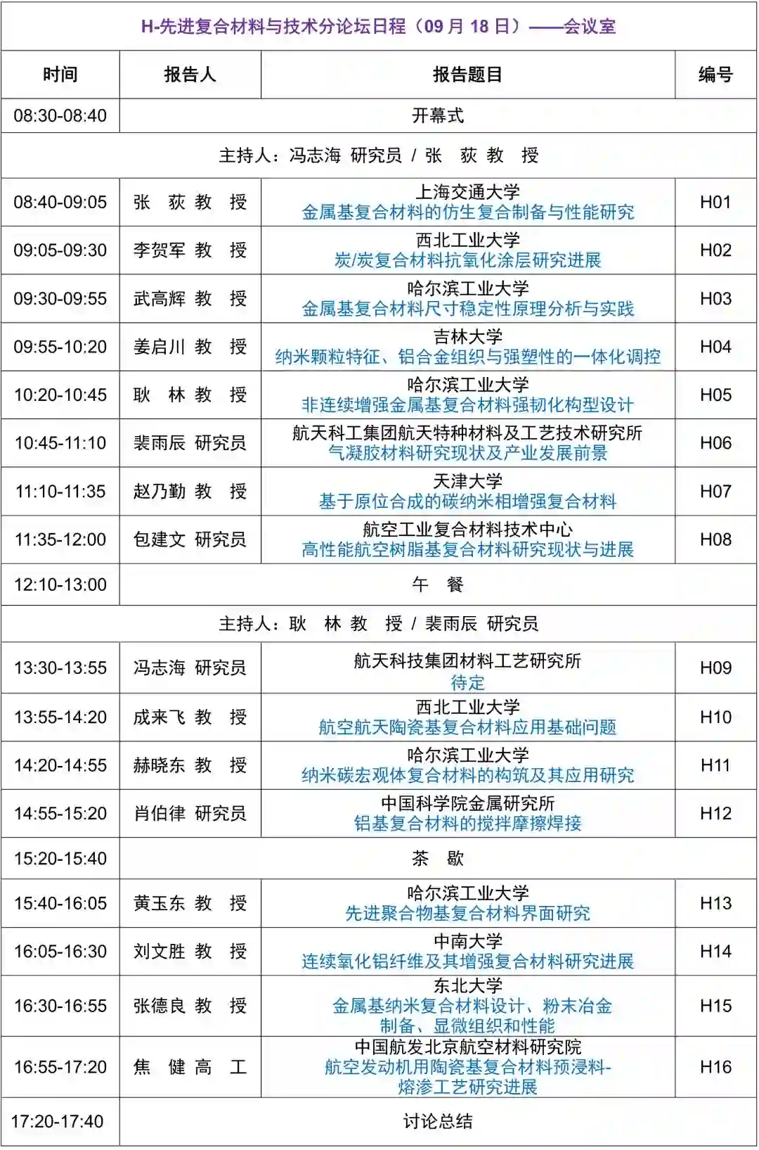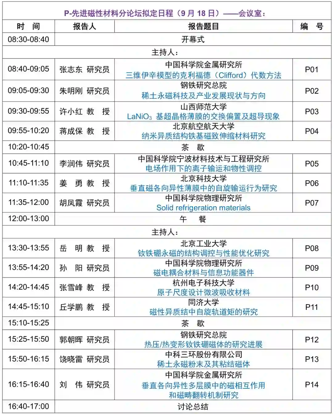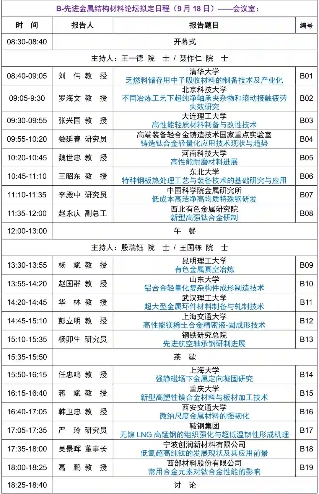 新材料国际发展趋势高层论坛拟定议程