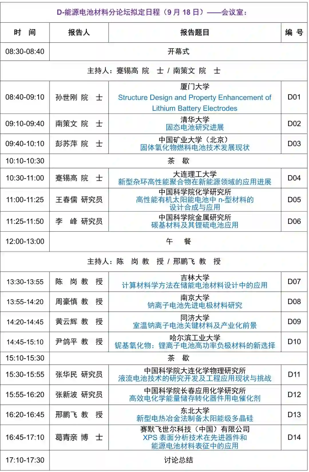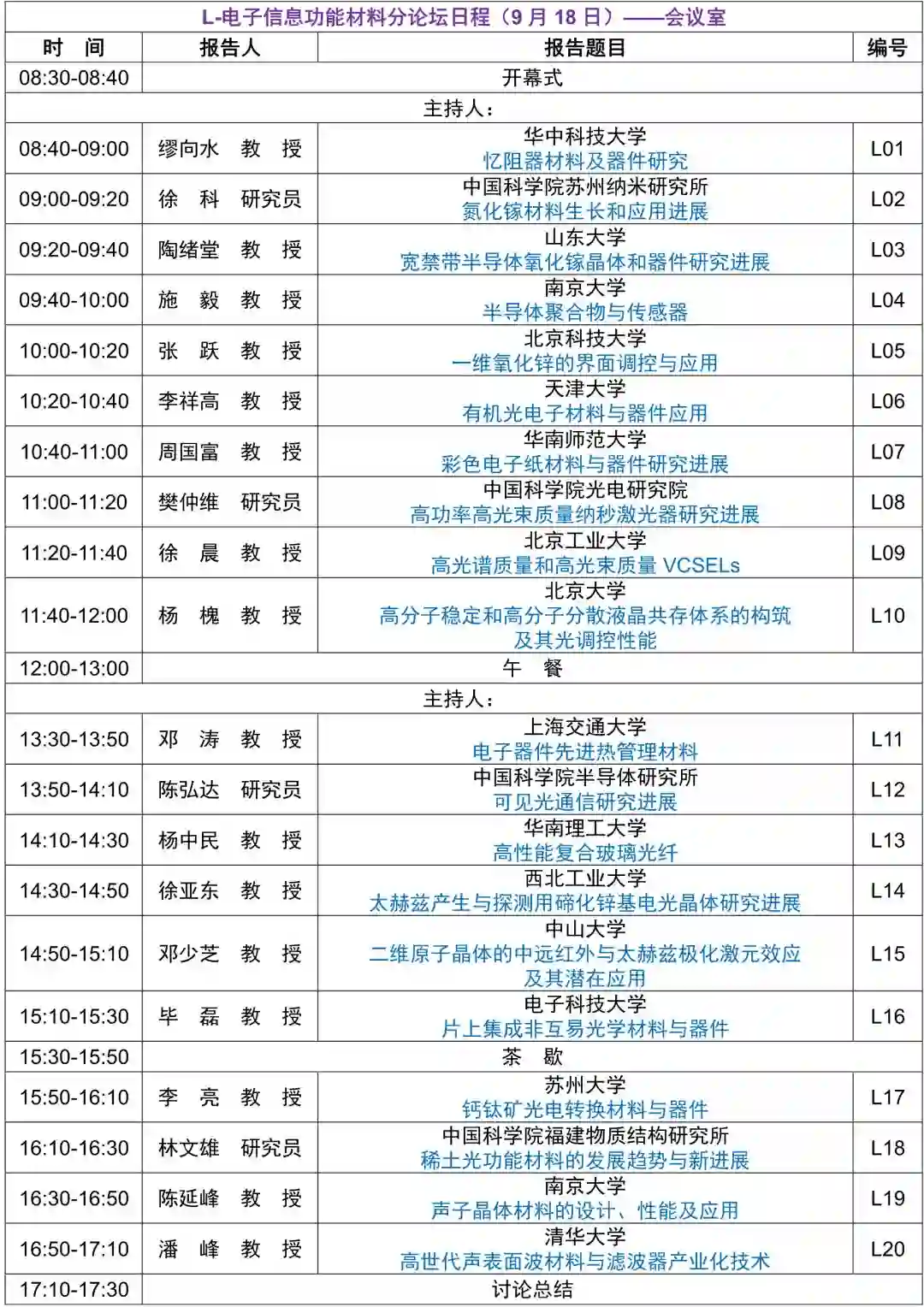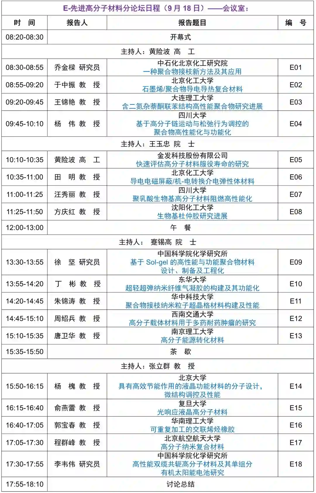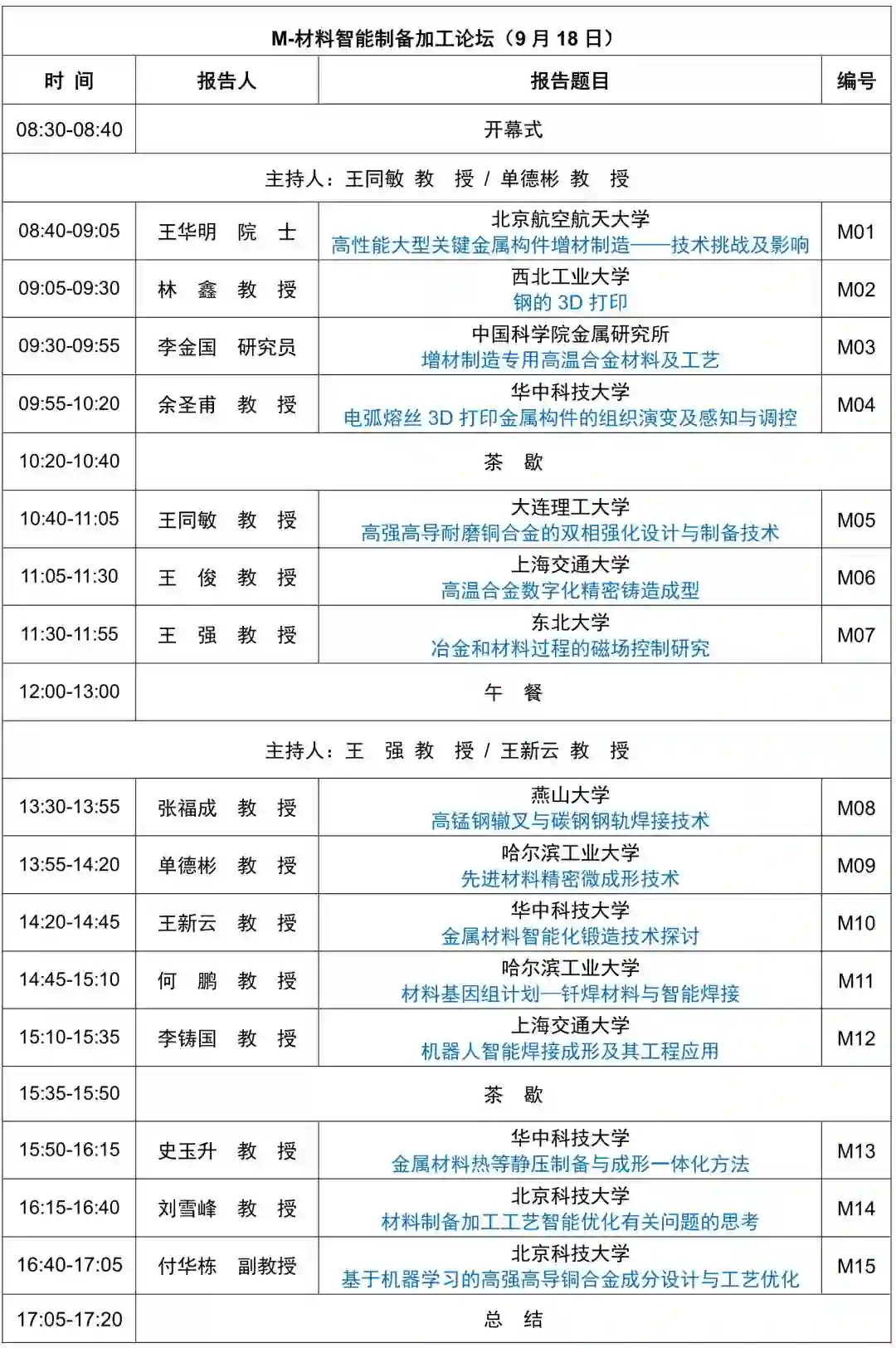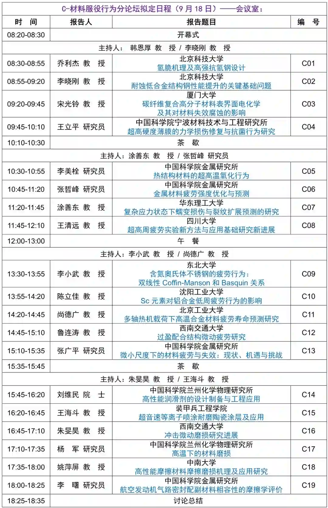 新材料国际发展趋势高层论坛拟定议程