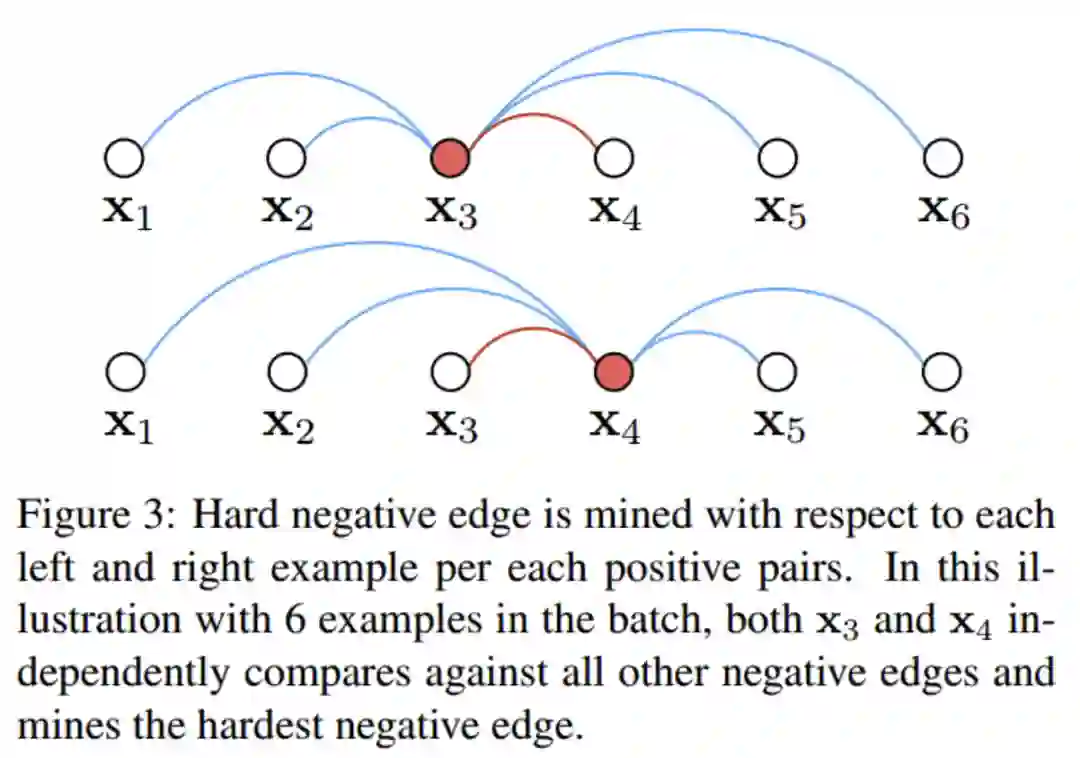 对于 和 不区分谁是 anchor,都去搜索难分负例。并且平滑的挑最难的样本,即使用 log-exp 函数来替代传统的 max 操作。