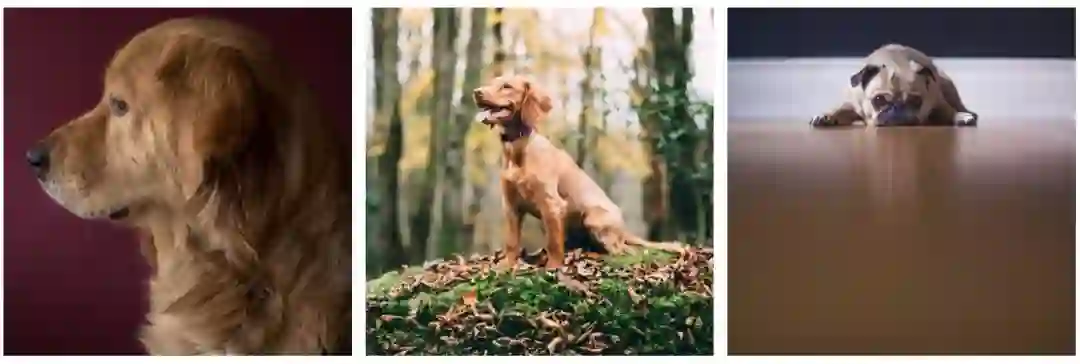 从左到右:狗占据图像的区域依次减小(图源:https://unsplash.com/)。