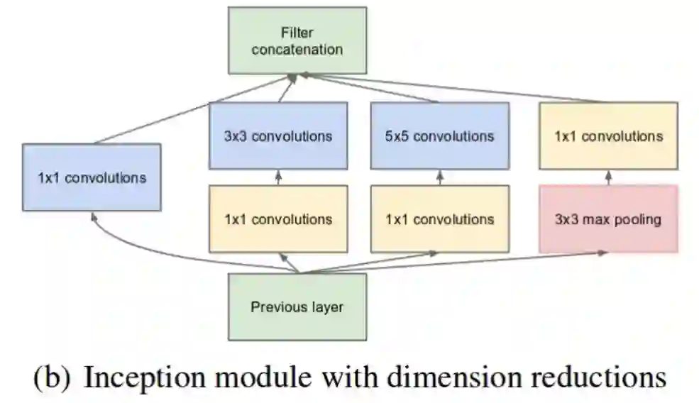 实现降维的 Inception 模块。(图源:https://arxiv.org/pdf/1409.4842v1.pdf)