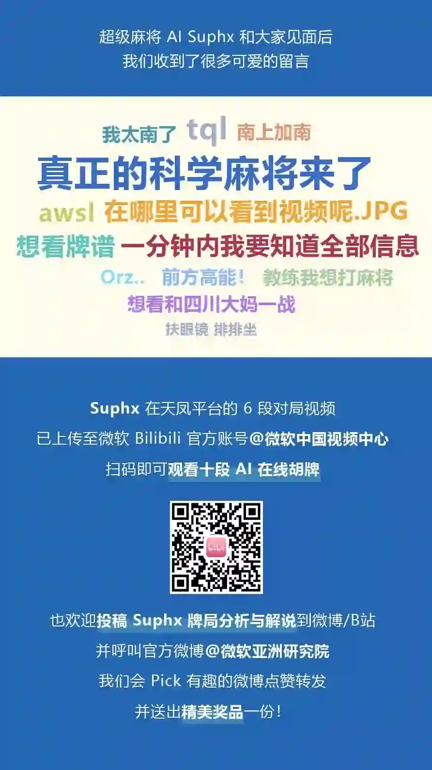 更多Suphx对局视频,请访问微软Bilibili官方账号“微软中国视频中心”