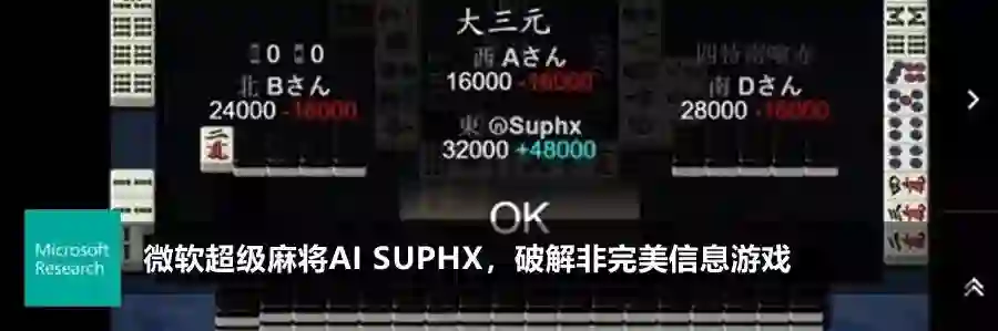 我们有发论文的计划。Suphx 目前还在迭代进化中,我们希望再给它一些时间来充分学习、不断提高,也希望在整个麻将社区的共同帮助和呵护下,Suphx 可以与麻将社区共同成长。我们会等到一个适合的时机,把所有的技术细节向公众展示。