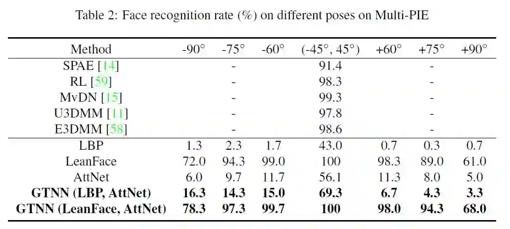 得益于大数据和深度学习的支持,人脸识别技术最近取得了长足的进步。不过,由于特征提取方法的局限,人脸识别技术在处理姿态变换问题时尚有不足。比如当一个人正面面对我们和侧面面对我们时,传统的提取特征方法提取到的特征FRF(face recognition features)肯定是不同的,这就会降低我们的识别准确率。而另一种特征FAF(face attribute features)对于光照和分辨率以及姿态变换则很鲁棒。什么是FAF呢?顾名思义,就是用一组属性来描述人脸特征。比如,一个人的外貌可以描述为“大鼻子,大眼睛,小嘴巴,高鼻梁,厚眉毛”,无论这个人以如何的姿态面对镜头,他的这些属性特征是不会改变的(比如不管正脸还是脸,大鼻子还是大鼻子),所以说FAF具有一些很鲁棒的特性。但是,单独用“大鼻子,大眼睛,小嘴巴,高鼻梁,厚眉毛”这些属性来描述一个人外貌又显得不够有区分性,因为长这样的人实在太多了。所以,本文作者为了充分利用两种特征的互补性,将FRF和FAF二者特征用基于张量的方法融合。由于求解张量特别繁琐,作者发现这个求解过程完全可以用一个神经网络来等价。于是作者最终使用神经网络来获取最终融合后的特征,降低了计算的复杂程度,并且取得了不错的效果。