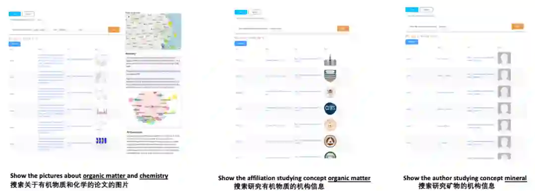 一个创新的研究,要对学科领域的论文进行充分的调研,地学也是如此。我们对此给出多模态的地学语义搜索系统。区别于谷歌学术等学术搜索引擎,GAKG-Search基于GAKG的地学文章知识点和提及的关键要素进行语义层面的相关性匹配,并返回论文及论文涉及的图片、表格、时代以及地理位置信息,弥补了关键词匹配式搜索忽略了语义信息的缺点。