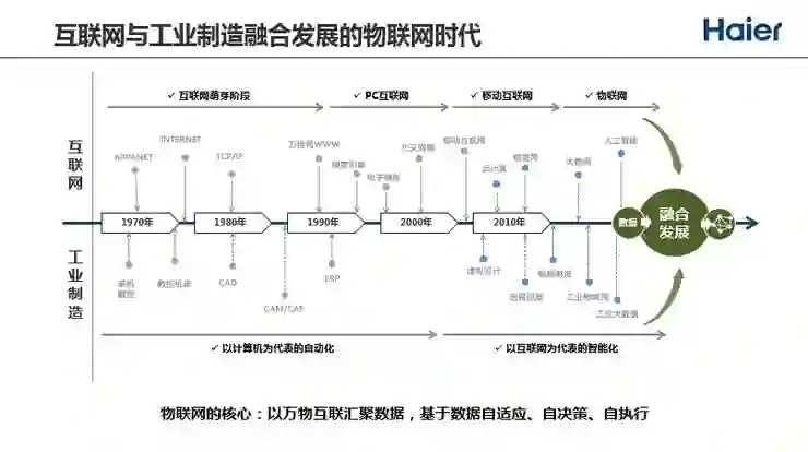 一个比较重要的趋势是互联网的发展和工业制造的发展在物联网时代真正开始融合,互联网连接的是人与人,工业制造连接的是设备与设备、物与物,在物联网时代,我们要连接的不光是物与物,还有物与人、物与人与服务,背后是万物互联的互联网产生大量的数据,这些数据可以供业务做决策,提升效率和降低成本,提升用户体验。