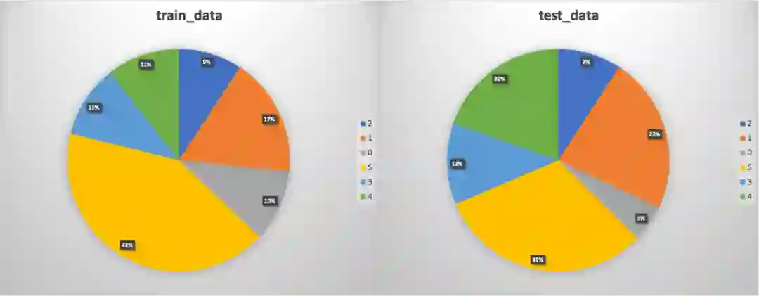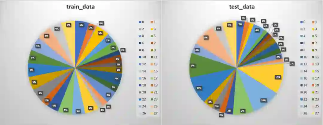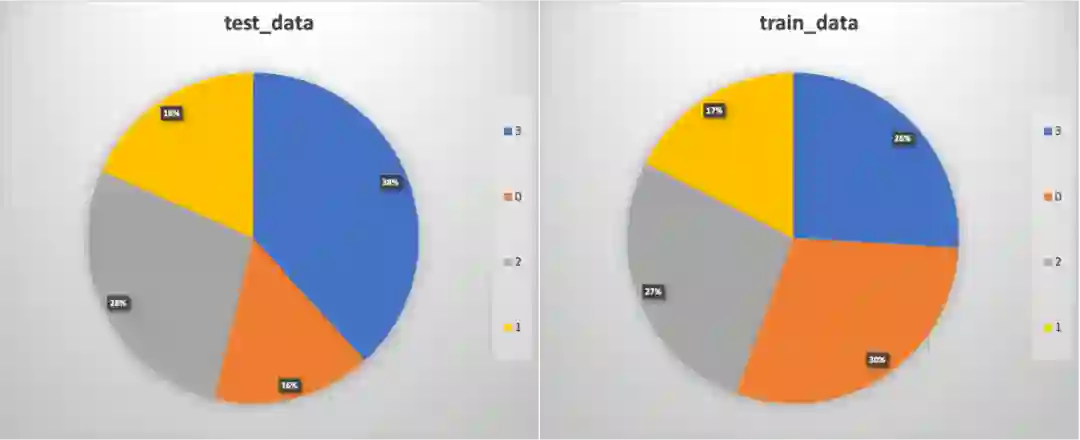 该任务的数据集共包含 3000 条样本,其中训练集数据约 1100 条,测试集数据约 1900条,各类别分布情况如下: