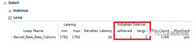 从上面的综合报告我们可以发现一个细节,虽然整个循环已经流水化了,但是 Initiation Interval 却仍然不是理想情况的 1,即:不能做到每个周期都开始一个新的 Iteration 的计算。那么问题出在哪里呢?还有没有进一步优化的空间呢?