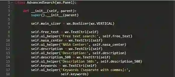 advanced_search模块作为wx.Panel,包含对NASA API进行高级搜素所需的全部部件。如果您阅读他们的文档,您会发现大约有十几个过滤器可以用于搜索。