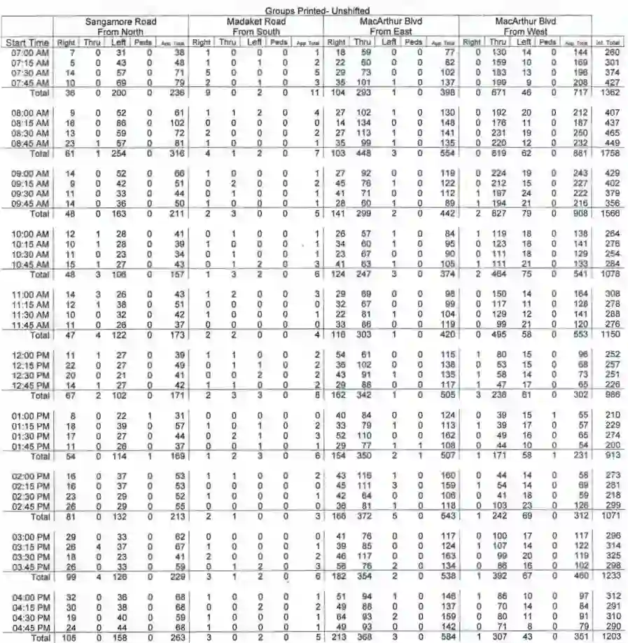 交叉口转向交通流量一般统计12小时或13小时,从早6点或早7点到晚7点。在一些流量较少的交叉口或特殊交通调查,也可统计早中晚高峰时段交通流量。