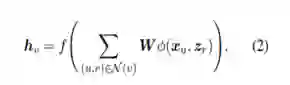 其中,N(v)表示实体v的一跳邻居(的关系和尾实体pair),f是个非线性激活函数ReLU,x与z分别表示实体和关系的初始特征向量。