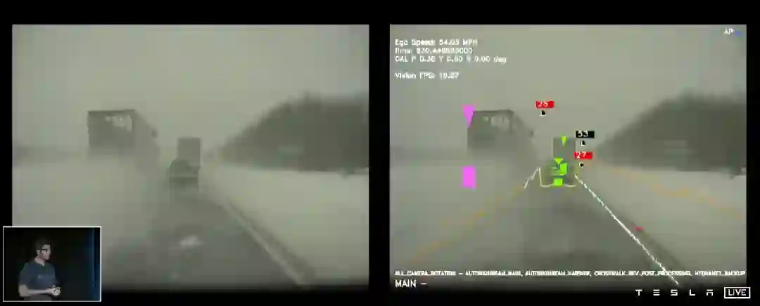 根据特斯拉的展示,通过使用视频网络,视频模块的结果曲线已经在雷达信号之上。