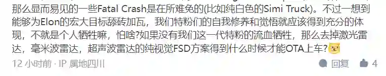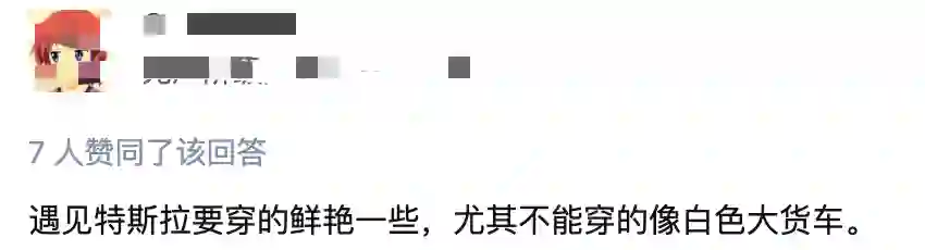 对此,有网友称遇见特斯啦要穿的鲜艳一些,尤其不能穿的像白色大货车。