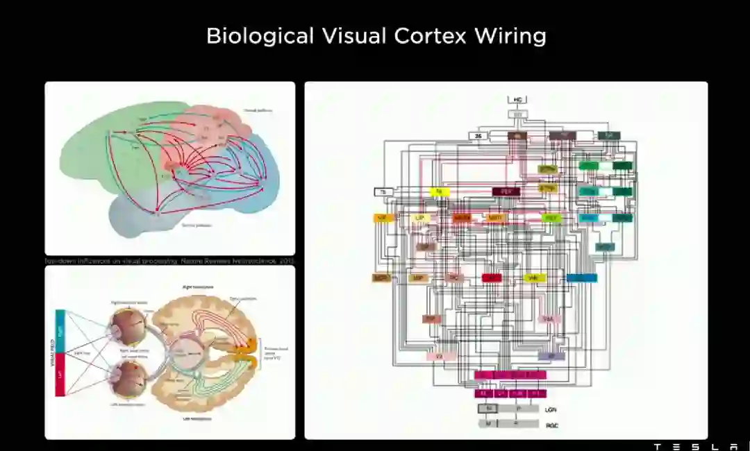 特斯拉理想的视觉模拟摄像头,就像人类视觉皮层的神经网络连接一样,能够模拟大脑信息输入和输出的过程。