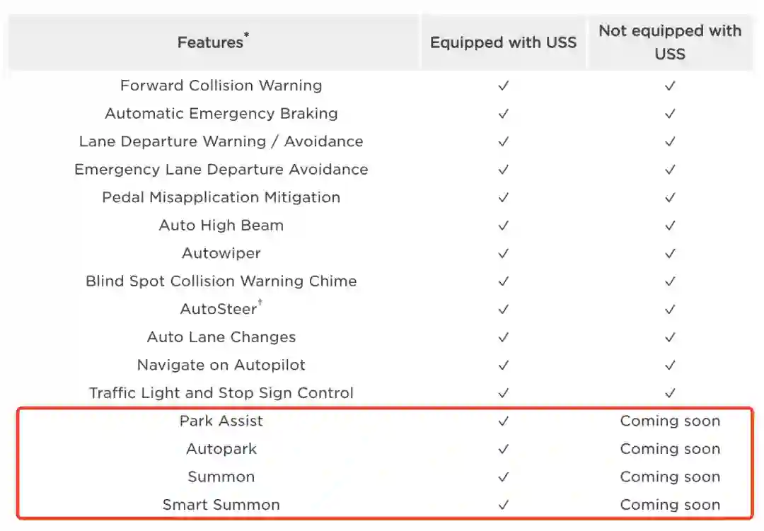 最后,特斯拉还指出在最近交付的没有配备UUS车辆会有部分功能在短期内受到限制,比如泊车辅助、自动泊车、召唤、智能召唤功能。