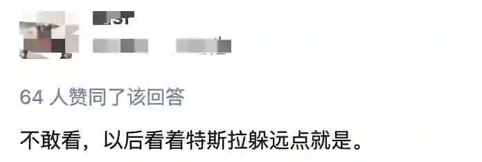 网友表示:不敢看,以后看见特斯拉就要躲远点。