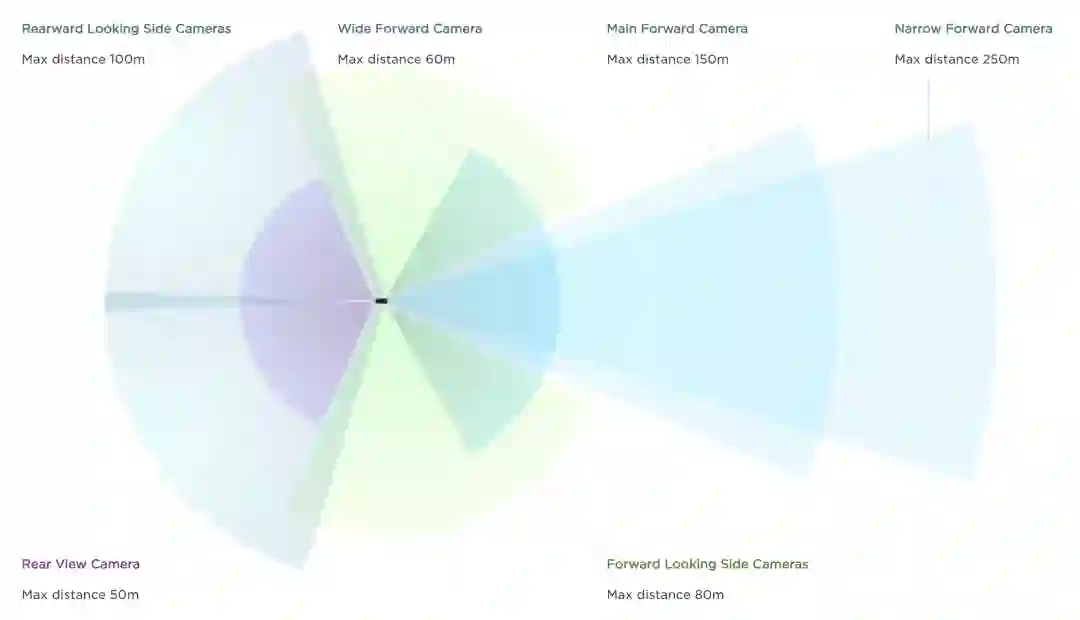 在今年十一的AI Day上,马斯克祭出一套100%纯视觉方案:8个摄像头,only摄像头。