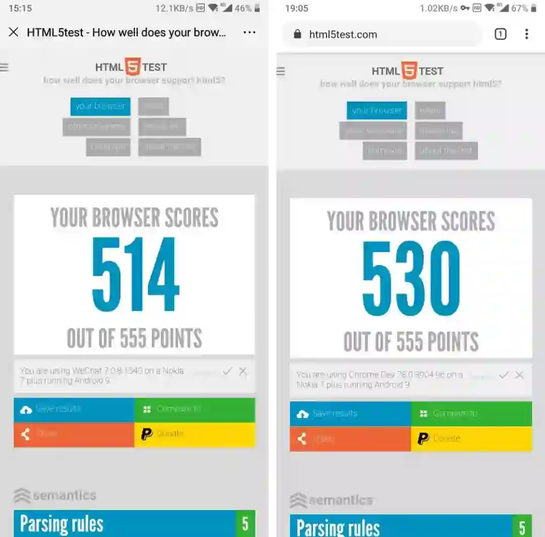 微信与系统浏览器 HTML5 性能跑分