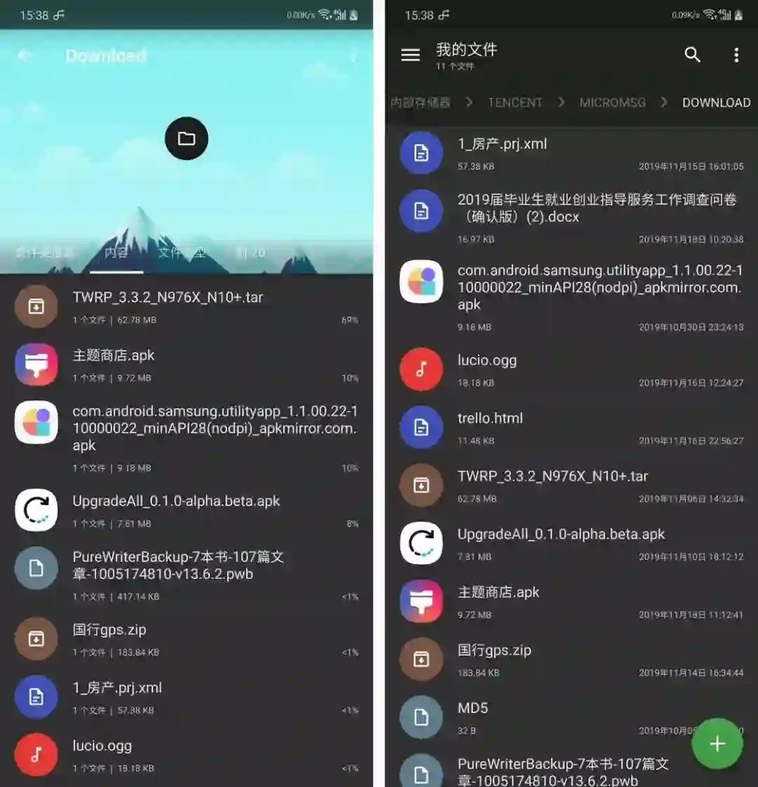 高效的微信文件管理:经常使用微信 QQ 收发文件的人对文件管理这点一定深有体会,无论是哪个系统版本的微信 QQ 接收文件放的路径都特别深(Android 微信储存文件路径是 内置储存/Tencent/MicroMsg/Download),不仅每次都很难找,而且所有文件都放在同一个目录,时间久了文件特别杂乱。