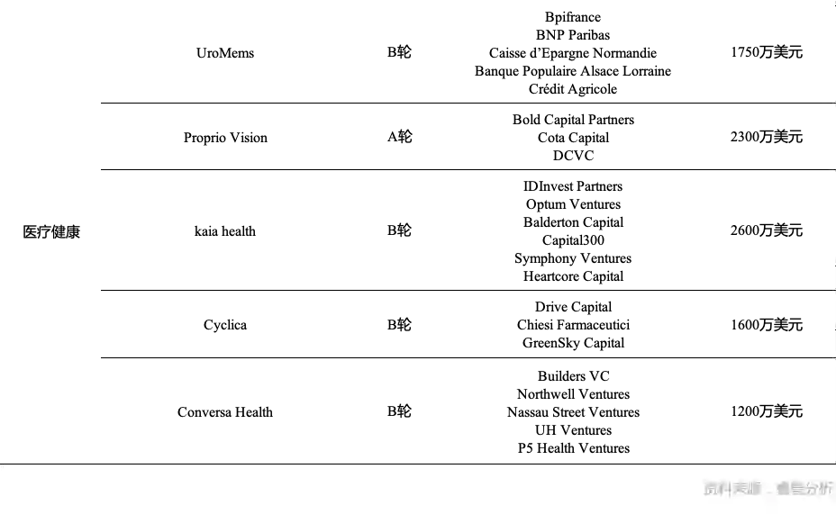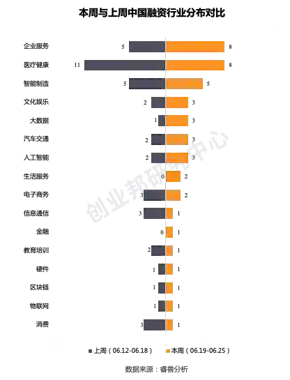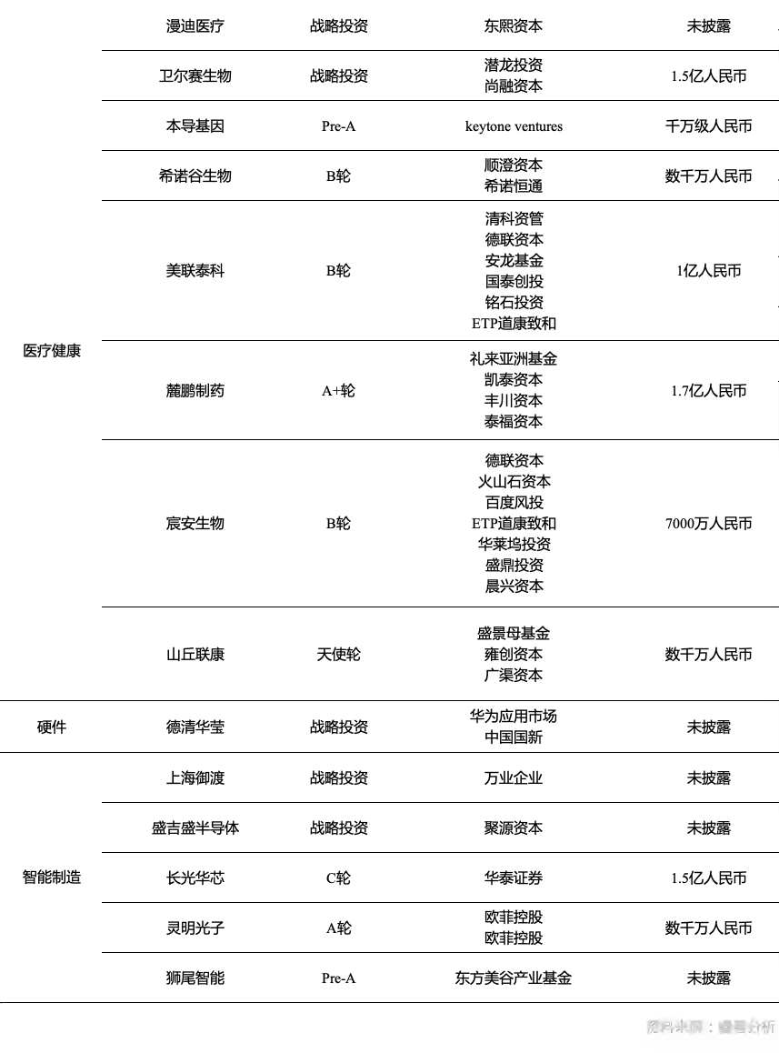 相比于上周,医疗健康、企业服务、智能制造热度不减;信息通信本周仅有1起,相比上周有所减少。