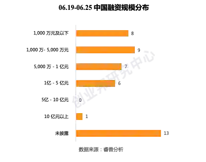 本周融资事件的融资规模在1,000万-5,000万元的数量最多,有9起。