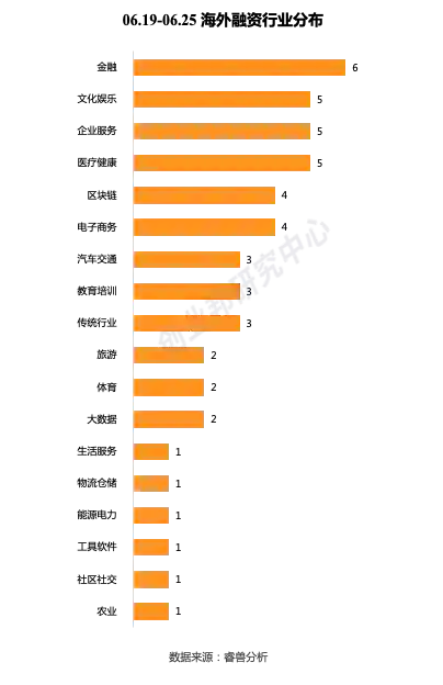 行业领域,其中企业服务、医疗健康并列8起,智能制造5起,文化娱乐、大数据、汽车交通、人工智能并列3起。