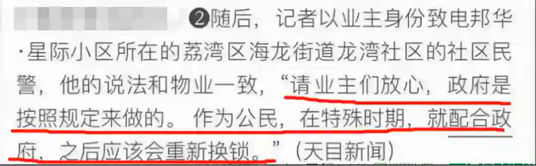 最后,在他们眼里:“这是按照规定来做的。作为公民,在特殊时期,配合之后会重新换锁。”