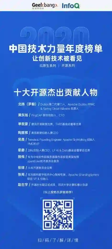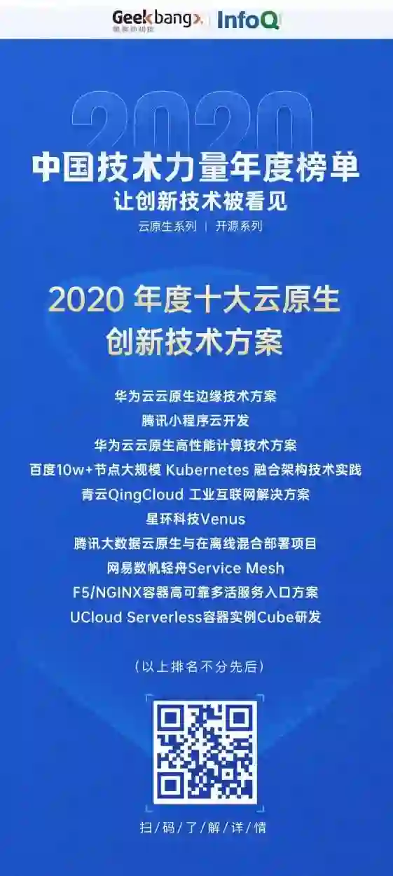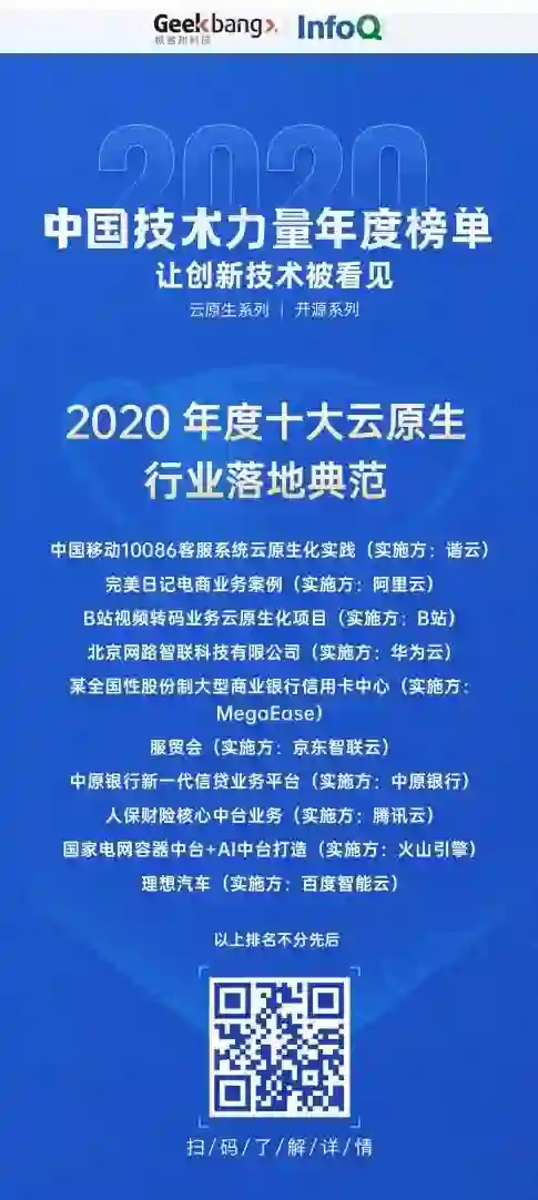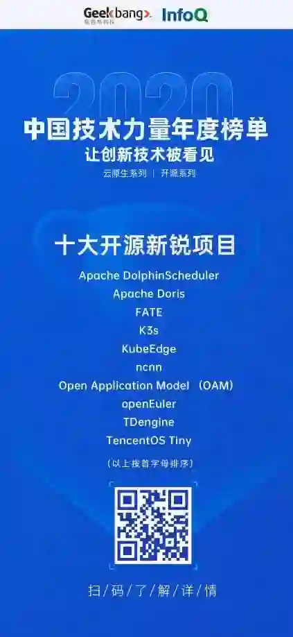 300+参评项目,100+入围项目,10000+开发者公开票选,20+专家评审,10+主编团打分,历经数月打磨,11 月 19 日,由 InfoQ 发起并组织的【2020 中国技术力量年度榜单评选】结果正式揭晓。(以下榜单内排序,均不分先后)