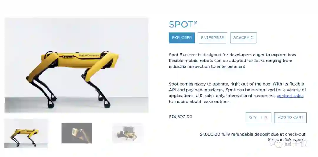 最后,波士顿动力还推出一项类似于苹果Apple Care+的保修增值服务,价格15000美元,包括延长保修期和加急维修服务。