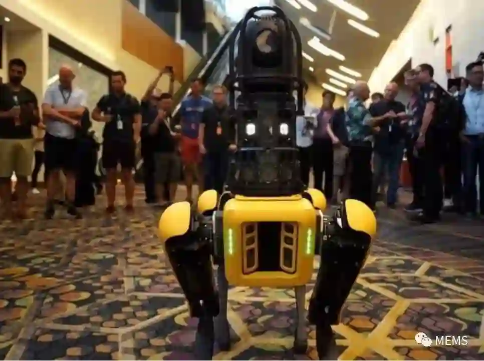 在大会的第一天晚上,两个Spot机器人和人群混在一起,并由该公司两名员工监督。它们能够自主地导航环境,能够承受踢和推,并在复杂的地形上保持平衡,但它们不会自己决定走到哪里。