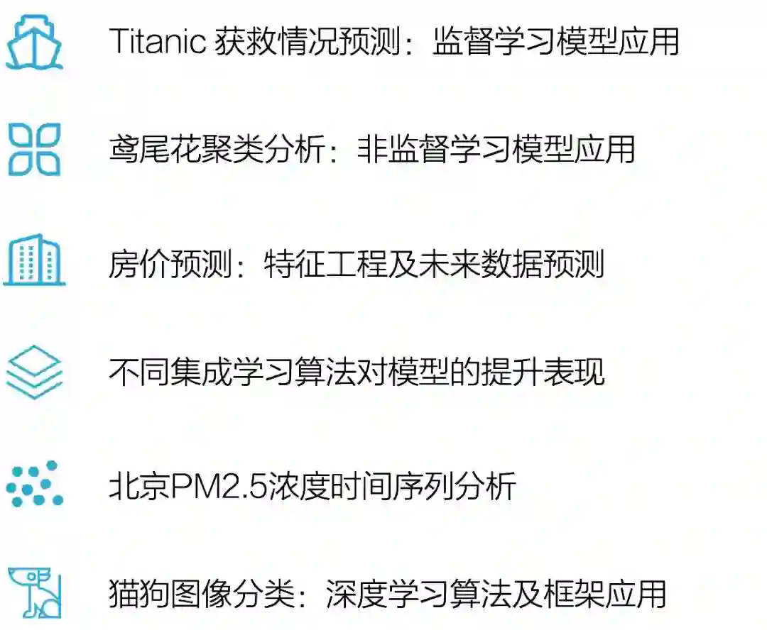 除此之外,课程还会涉及时间序列、强化学习、深度学习的知识,让你可以处理更多样化的数据以及应用场景。