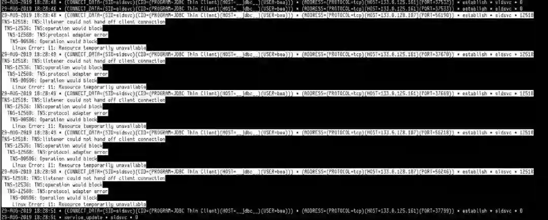 当把一个只读业务迁移之后,监听出现大量的短连接冲击,出现一些TNS错误。