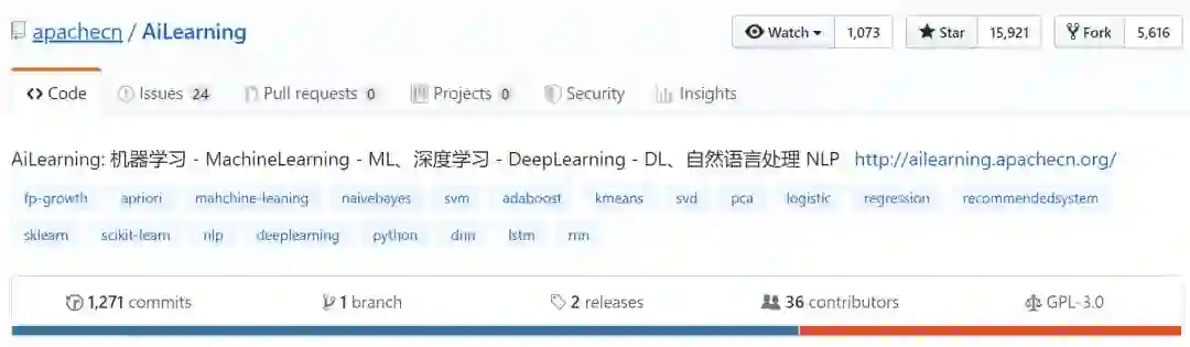 Github:github.com/apachecn/AiLearning