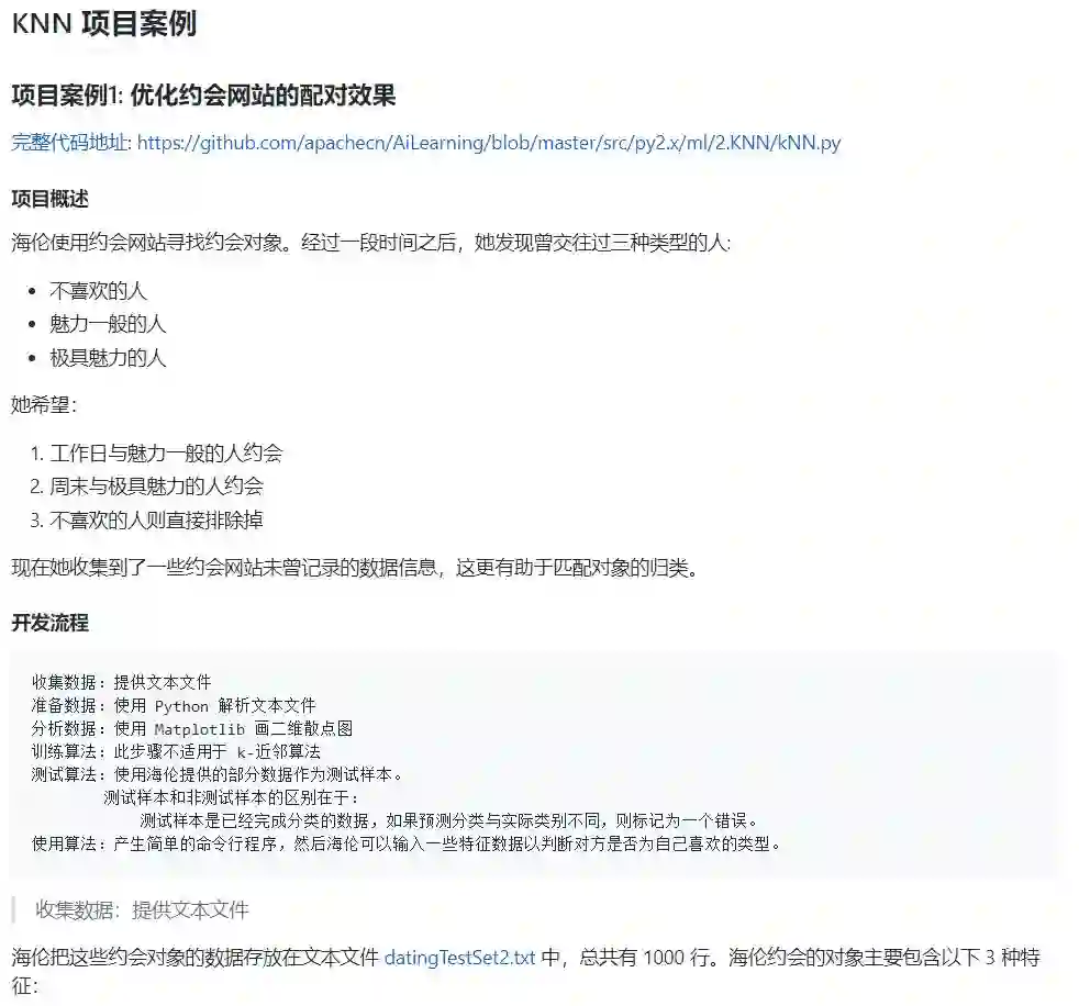 随后介绍了KNN项目案例,理论联系实践: