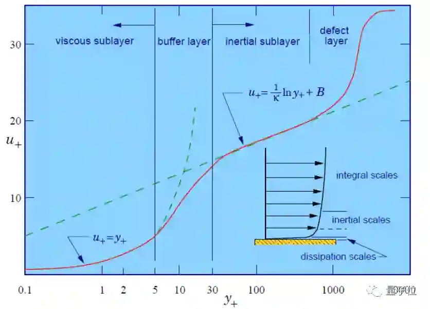 早在1920年,科学家们就已经发现了边界层湍流的四个区域,并且已经给出了一个速度变化曲线。